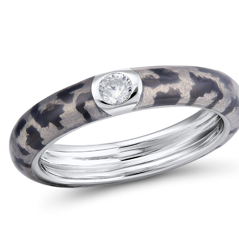 Sterling Silver Ring Enamel,White Cubic Zirconia (R311202ENA2SL925)