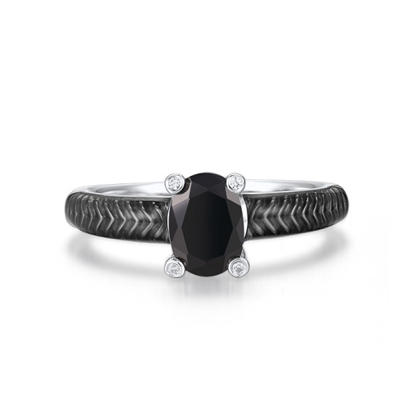Sterling Silver Ring Black spinel,Enamel,White Cubic Zirconia (R308038ENA6SL925)
