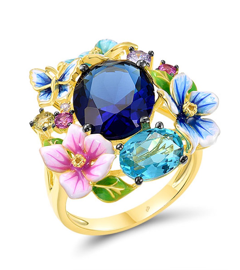 - Blue Glass 2pc 4.335ct ,Created Pink Sapphire 2pc 0.180ct ,Enamel,Green Nano Cubic Zirconia (Per 1pc 0.085ct ,Light Blue Cubic Zirconia 2pc 0.210ct